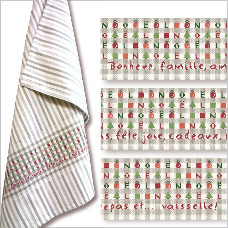 Use one strand and stitch over 1. We used a grey Graziano® tea towel, reference colonia rigato (22 count).