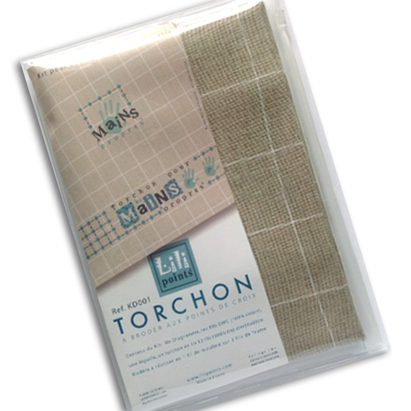 Linen tea-towel to embroider, sold as a full kit.